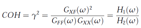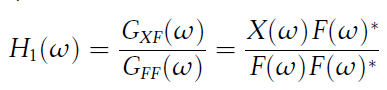 이는 응답과 힘 사이의 교차 스펙트럼을 힘의 자동 스펙트럼으로 나눈 것과 같습니다.