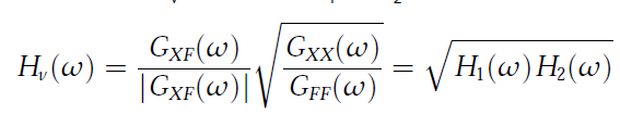 ◎ The Hv estimator gives the geometric mean of the H1 and H2 estimators and provides good results in the case of noisy input and output signals. To calculate the Hv estimator both H1 and H2 estimator are used.