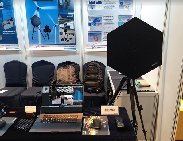 이번 전시에는 Dytran사의 진동센서, Norsonic사의 Nor848 Acoustic Camera와 함께 새롭게 mp Analyzer NVH 장비와 APS 113 저주파 가진기를 시연하였습니다. 그리고, Sound Insight사의 SONOCAT 흡음 측정 및 음향강도 측정장비를 전시하였습니다.