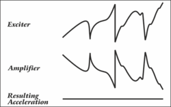 진동 시험을 위해서는 전기자(armature)의 진동 진폭을 일정하게 유지해야 합니다. 하지만 주파수 응답 곡선은 평탄하지 않고 공진 피크를 나타냅니다. 또한 시편 자체에서도 공진이 발생합니다. 따라서 전기자와 시편의 실제 진동 값을 설정된 기준값과 비교하여 주파수 변화에 따라 게인을 조절해야 합니다. 진동 테이블 제어 시스템은 주로 주파수 발생기, 진동계, 제어 증폭기로 구성됩니다(그림 3).