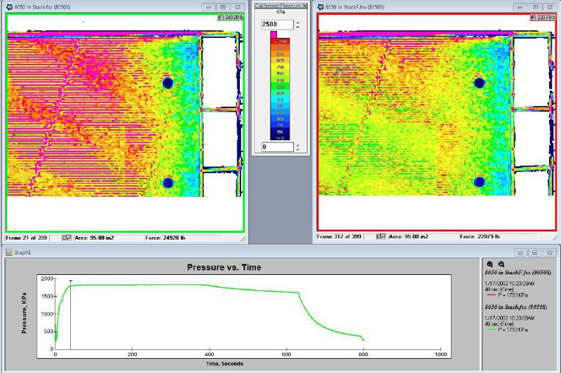 I-Scan™ 압력 측정 시스템은 연료 전지 제조업체에 부품 거동 및 조립 대안에 대한 방대한 통찰력을 제공합니다. I-Scan의 데이터를 통해 서로 다른 설계의 압력 패턴을 직접 비교할 수 있어, 설계 검증 시간을 단축하고 재설계 비용을 절감할 수 있습니다.