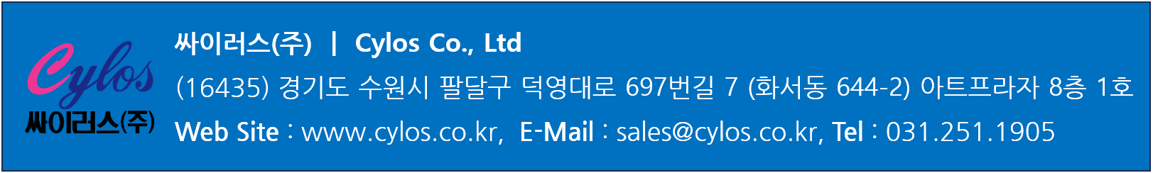자세한 내용을 원하시면 sales@cylos.co.kr, 031-251-1905로 문의를 주시거나, 싸이러스 홈페이지를 참고하시기 바랍니다.
