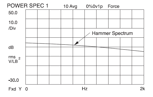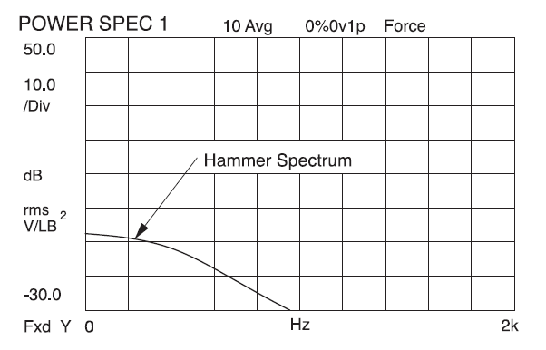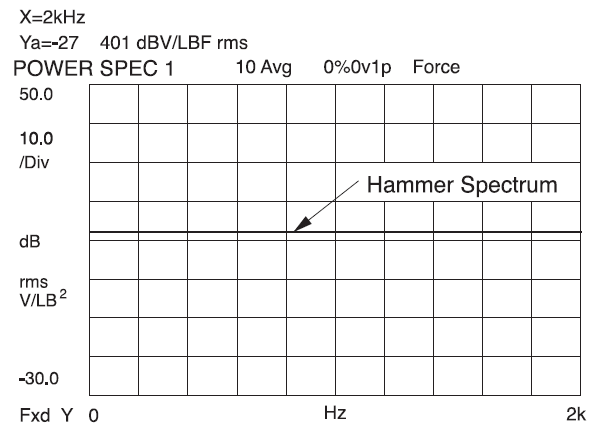 그림 2는 스펙트럼 분석기에서 볼 수있는 Dytran 시리즈 5800B 해머의 일반적인 결과입니다.
