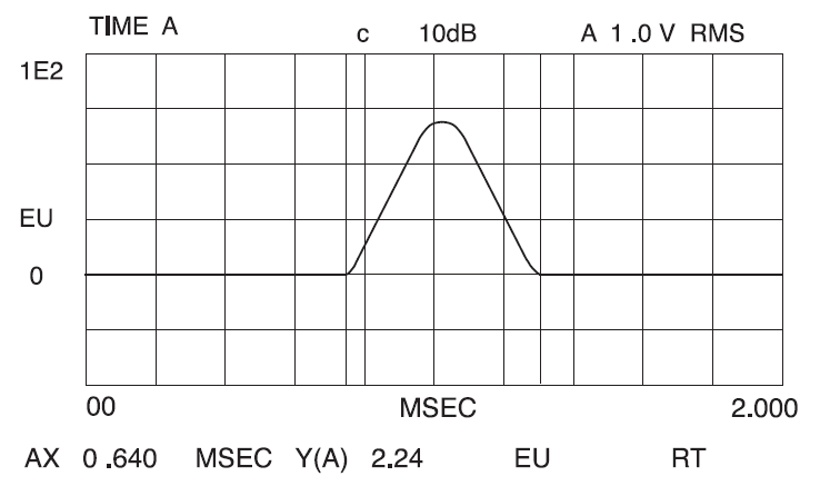 그림 5는 하드 플라스틱 팁을 사용하고 헤드 익스텐더를 사용하지 않는 임펄스 해머를 통해 생성된 아날로그 전압 펄스 그래프입니다. 펄스 지속 시간은 640mSec입니다.