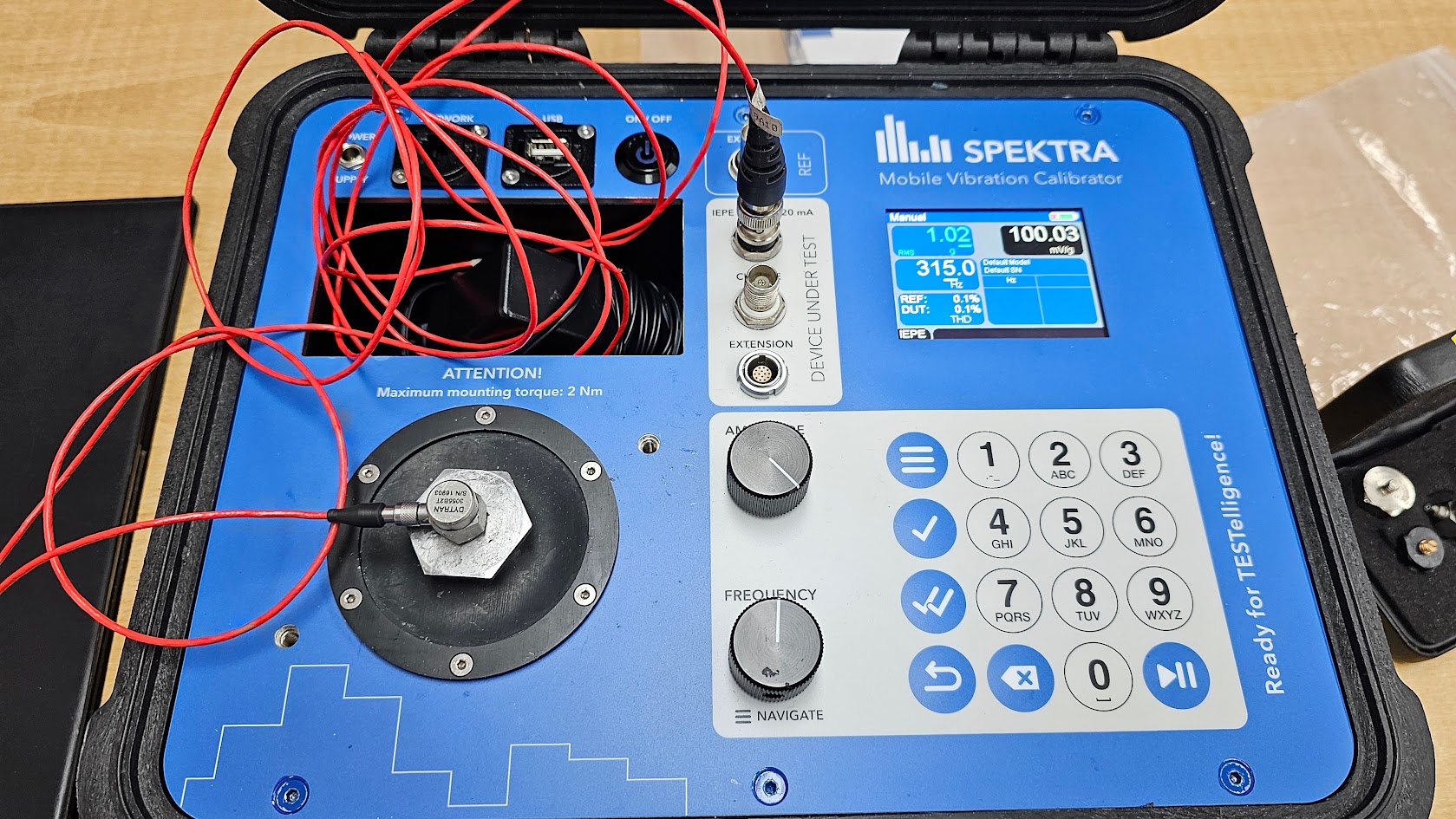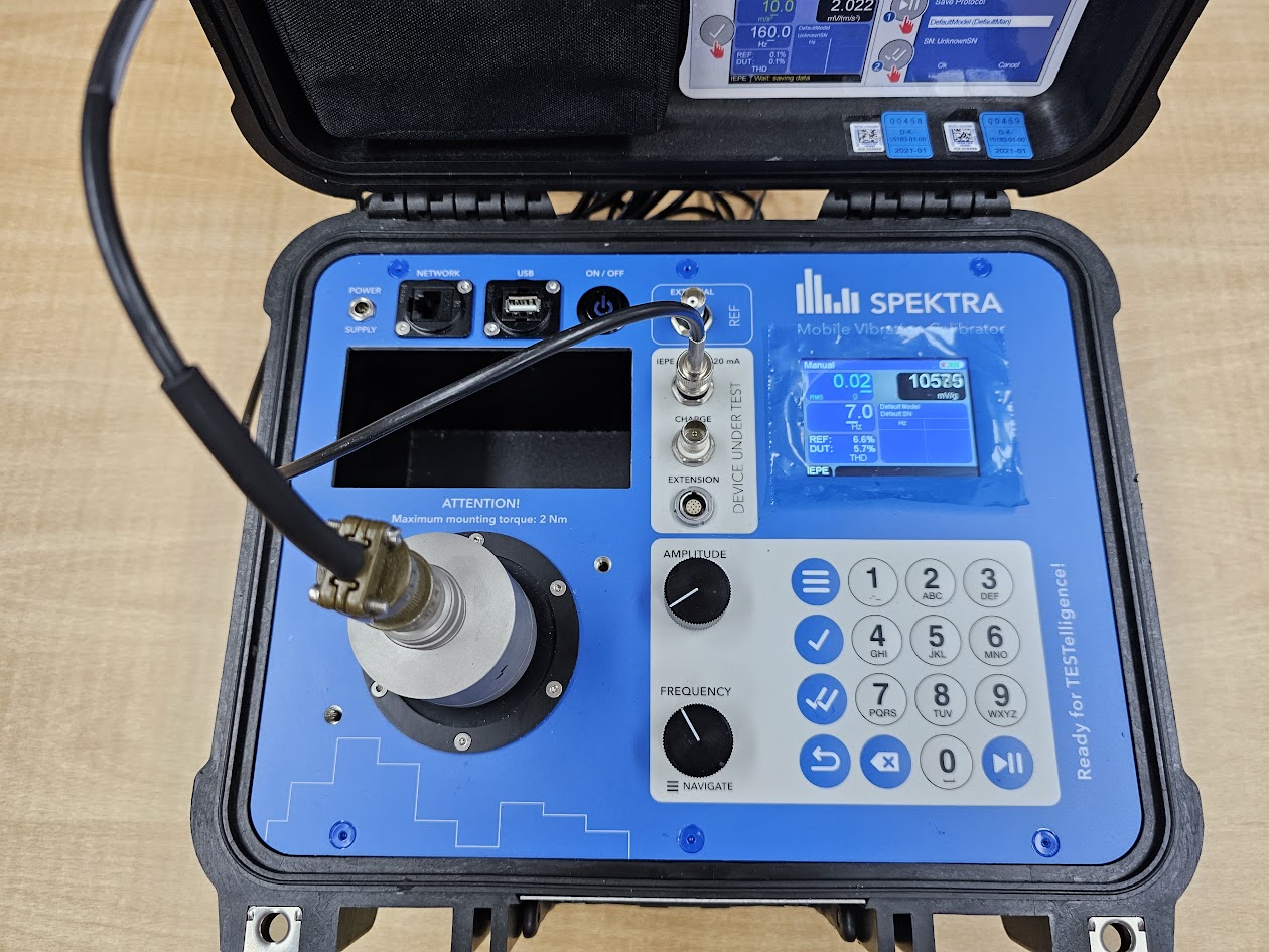 휴대용 진동센서(진동가속도계) 정밀교정기는 가진기, 제어회로, 센서 신호 수집장치 등으로 구성이 되어 있습니다. 가진기 내부의 기준가속도계와 제어회로는 교정대상 무게와는 독립적으로 교정 주파수와 레벨을 일정하게 유지하여 현장에서 교정을 할 수 있도록 합니다.