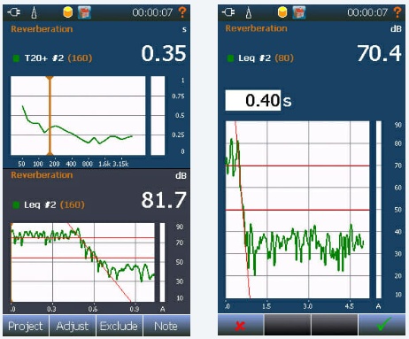 일관성을 확인하는 한 가지 방법은 예를 들어 비교하는 것입니다. T20과 T30입니다. 둘 사이의 불일치는 일반적으로 비선형 감쇠(로그 레벨 척도의 그래프로 표시했을 때)에서 비롯됩니다. 현재 이용 가능한 모든 노르소닉 건축 음향기기는 감쇠를 동시에 계산하는 적어도 두 가지 방법을 제시하는 능력을 가지고 있습니다.)