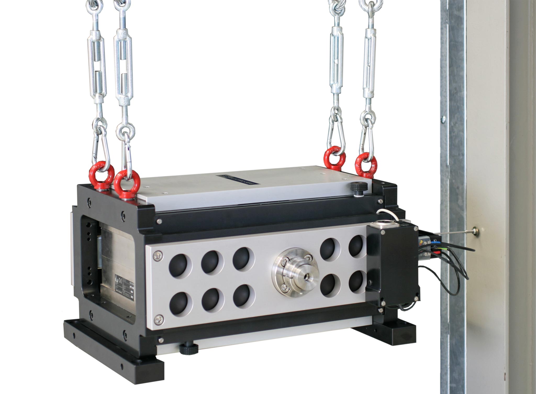 특징 : Linear ball Bearing 가이드 방식, 저주파 가진기, 장행정 가진기 , DC ~ 200 Hz 가진주파수 범위 158 mm pk-pk 변위, 445 N 가진력, 가진기 무게 약 73 kg